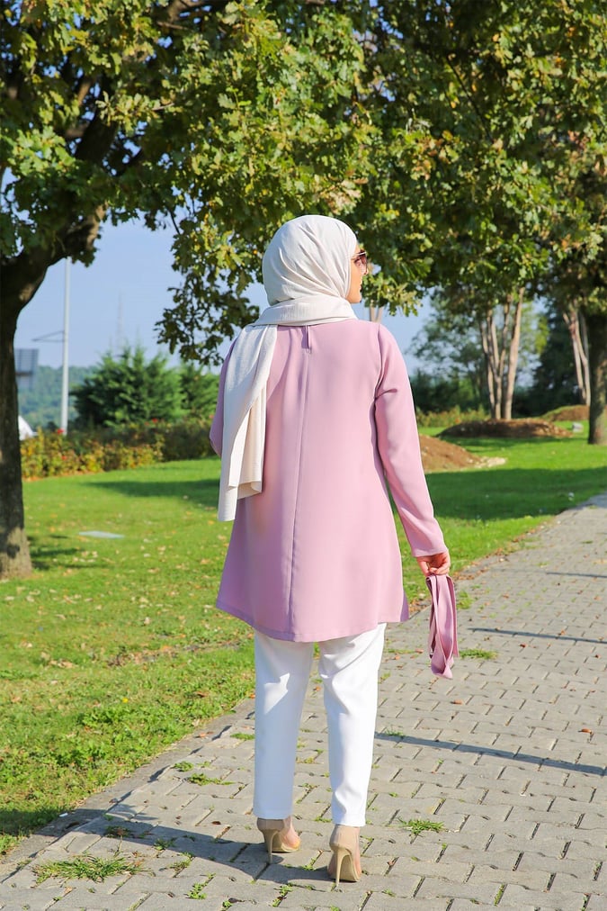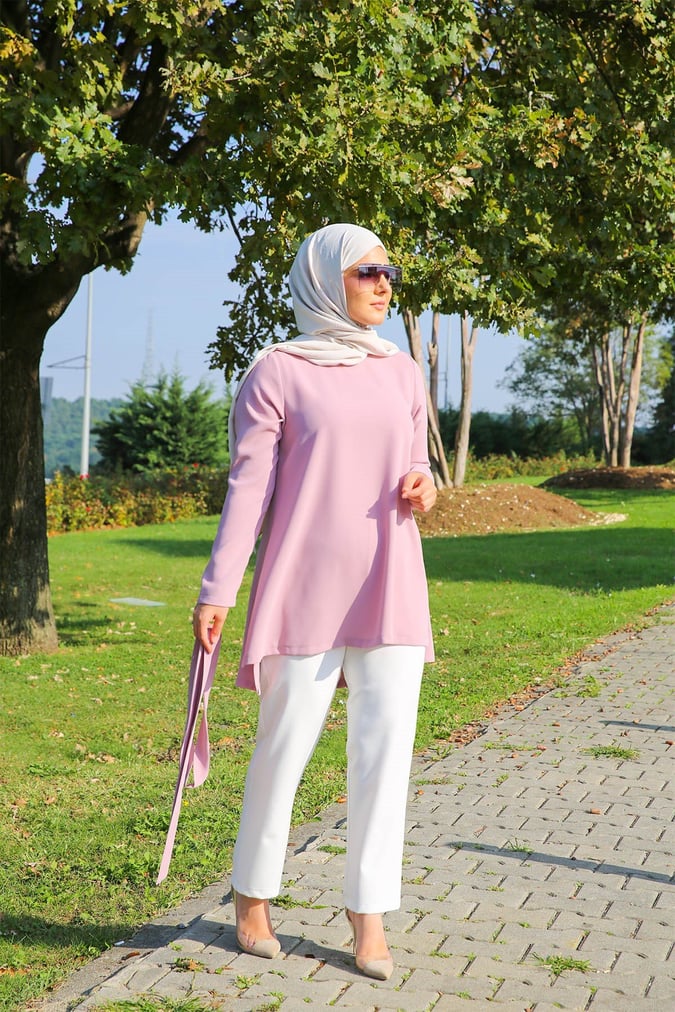 -Blouse opaque en crêpe légère, col rond , ceinture incluse.